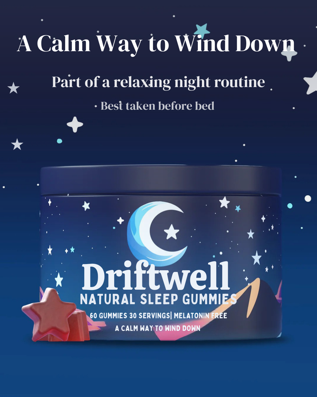 Driftwell supports calm, restful nights using a gentle, melatonin-free approach — without next-day grogginess.